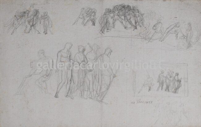 Pietro Benvenuti Arezzo 1769 – Florence 1844 Studies for Briseis Delivered to the Heralds of Agamemnon and for a Homeric Battle (recto) Study for a Homeric Battle (verso) • 1825 Pencil on paper, 441 × 308 mm Dated on the recto: “23 7bre 1825”