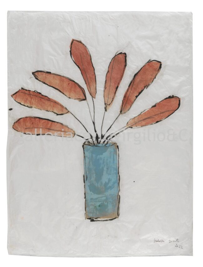 Isabella Ducrot Naples 1931 Blue Vase with Red Flowers • 2022 Pigments and collage on Japan paper, 100 x 78 cm Signed and dated lower right “Isabella Ducrot 2022”