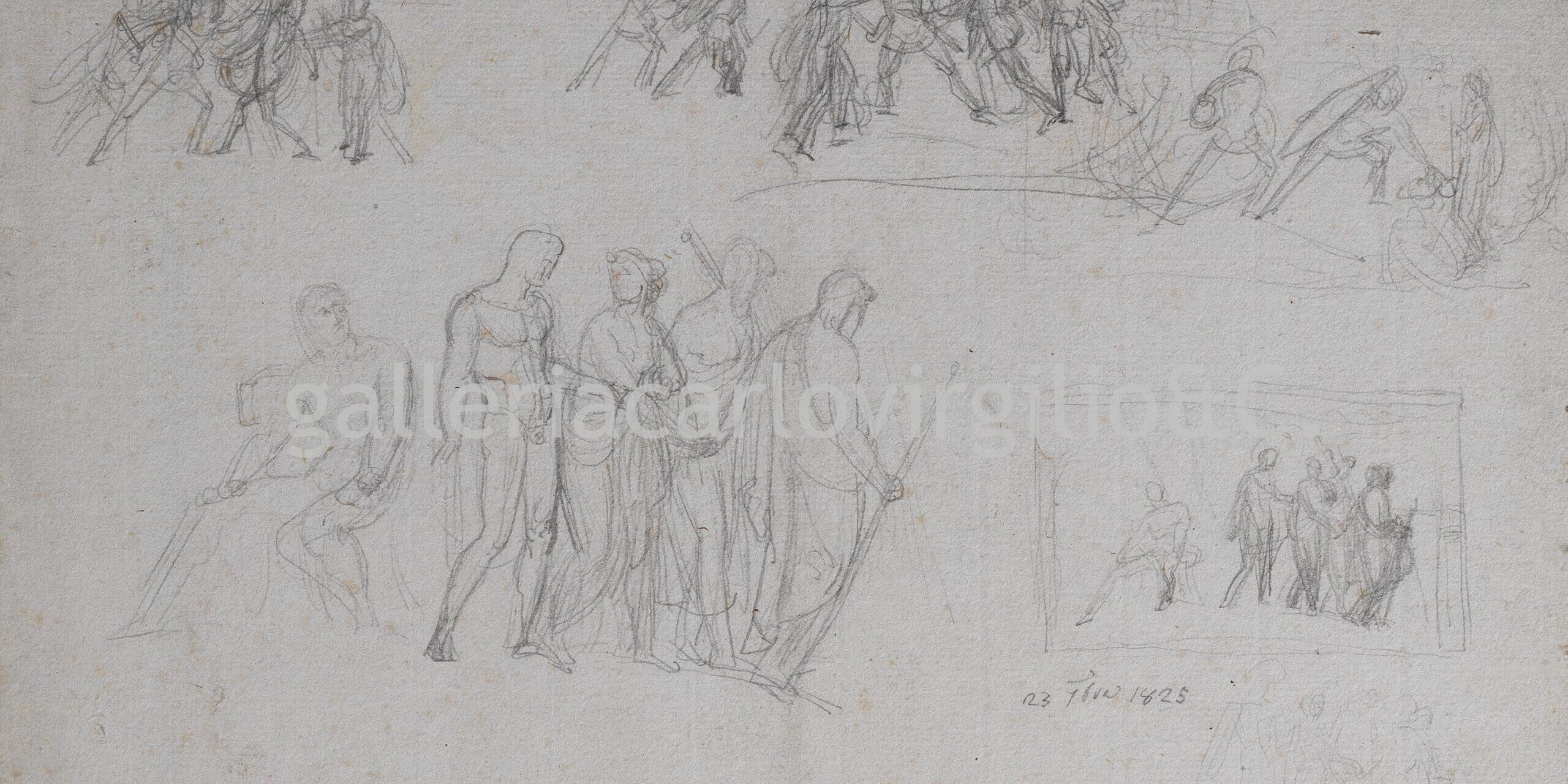 Studies for Briseis Delivered to the Heralds of Agamemnon and for a Homeric Battle (recto)